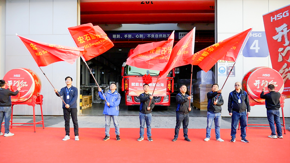 活動主會場設在佛山總部,整裝待發的運輸車輛整齊列陣,伴隨著激昂的音樂聲,禮炮齊鳴,發運車一馬當先,新一年的奮進激情被點燃。與此同時,蘇州、濟南及泰國基地同步舉行發車儀式,集中交付多批暢銷設備,展示了宏石激光強大的生產制造與高效交付能力,也全方位展現出公司穩健運營、逆勢增長的良好態勢。