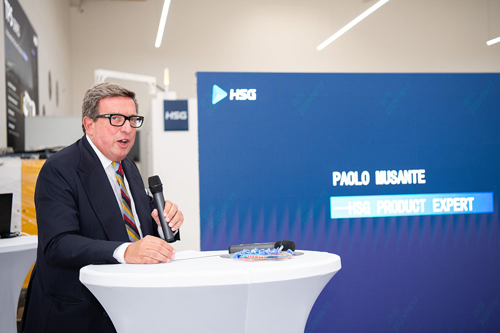 現場,兩款設備均進行了實機演示與樣品切割,全面展現宏山激光在多種材料與復雜結構工件上的卓越切割能力。宏山激光產品專家Paolo全程講解,從設備結構、控制系統、應用場景到維護便捷性,與來賓深入交流,現場反響熱烈,廣受好評。